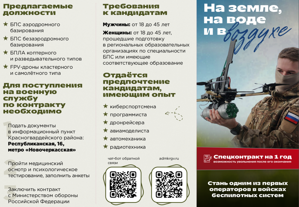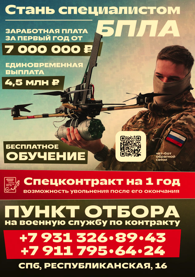 Бесплатное обучение профессии будущего и 4,5 млн рублей сразу — такие условия поступления в беспилотные войска созданы только в Санкт-Петербурге!